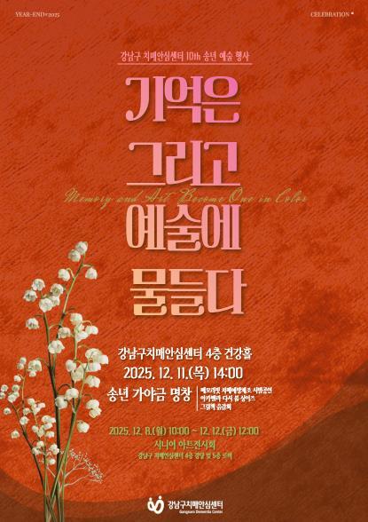 조성명 강남구청장은 “치매 예방과 인지 건강 관리의 구심점 역할을 하는 치매안심센터에서 뜻깊은 송년행사를 마련했다”며 “초고령사회에 맞는 돌봄 시스템을 강화하고, 모든 세대가 안심하고 나이 들어갈 수 있는 도시를 만들어가겠다”고 밝혔다.