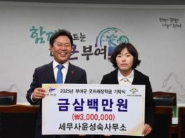 세무사윤성숙사무소(대표 윤성숙)는 지난 3일 부여군청을 방문하여 인재 육성을 위한 장학금 3백만 원을 (재)부여군굿뜨래장학회에 기탁했다.