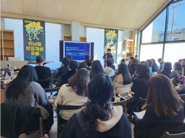 강진군 청년마을 공유주거 조성사업으로 조성된 성하객잔(병영면 홍교로 602)에서 진행된 이번 포럼은 1부 전문가 강연과 사례 발표, 2부 현장답사 및 워크숍으로 나눠 구성됐다.