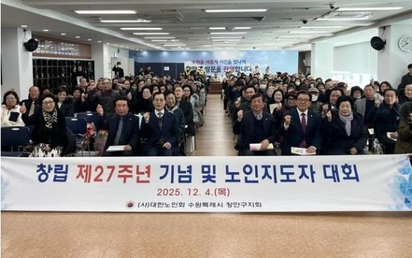 [한식일보] 대한노인회 수원시장안구지회는 지난 4일 장안구청 대회의실에서 창립 27주년을 기념하는 ‘2025년 노인지도자 대회’를 개최했다.