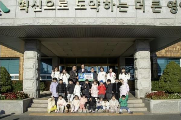 영암읍교회 어린이집 원생 20명이, 3일 영암군청을 찾아 영암군미래교육재단에 인재육성기금 100만원을 기부했다.