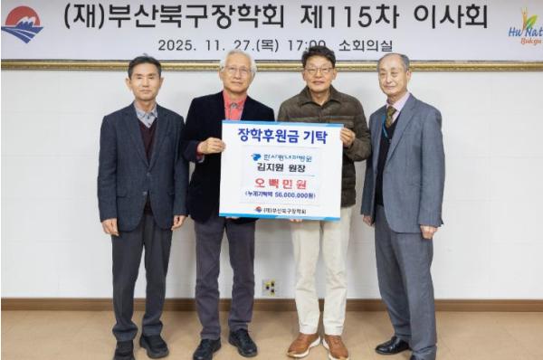 [한식일보] 부산 북구는 최근 한사랑내과병원 김지원 원장이 (재)부산북구장학회에 장학기금 500만 원을 기탁했다고 밝혔다.