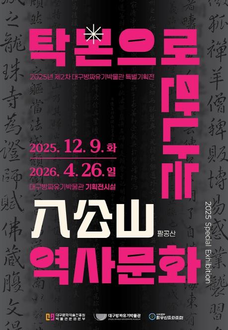 [한식일보] 대구문화예술진흥원 박물관운영본부 소속 대구방짜유기박물관은 올해 두 번째 특별기획전으로 ‘탁본으로 만나는 팔공산 역사문화’를 12월 9일부터 2026년 4월 26일까지 방짜유기박물관 기획전시실에서 개최한다.