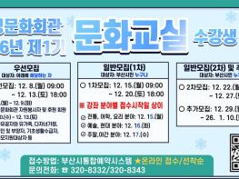 [한식일보] 부산시 여성문화회관은 오는 내일(8일)부터 '2026년 제1기 문화교실' 수강생을 모집한다고 밝혔다.