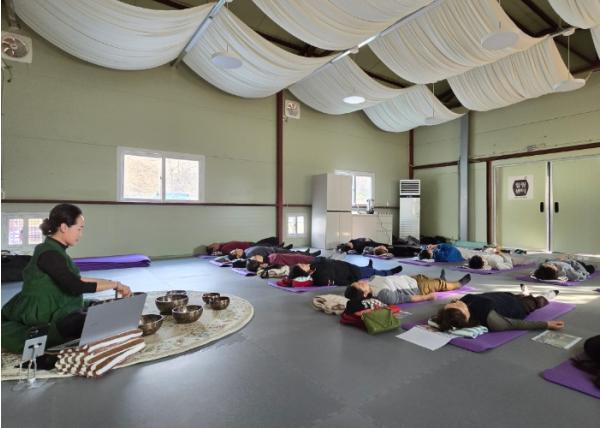 오전 프로그램에서는 △고추장 만들기 △오디·사과 타르트 만들기 등 지역 농특산물을 활용한 힐링 푸드 만들기 체험이 진행됐다. 이어 △오감만족 힐링 체험(힐링 체조· 명상 등) △힐링 괄사 마사지 △힐링 스포츠 테이핑 등 차별화된 치유 프로그램을 운영했다.