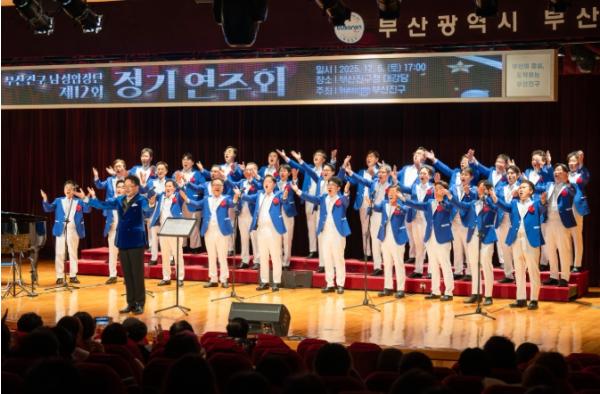 [한식일보] 부산진구 남성합창단이 지난 6일 구청 대강당에서 지역 주민 및 관계자 등 200여 명이 참석한 가운데 제12회 정기연주회를 성황리에 마쳤다고 밝혔다.