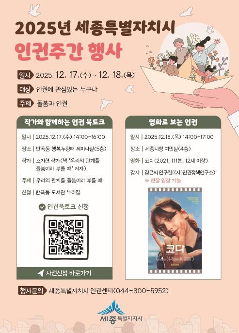 올해 인권 주간의 주제는 ‘돌봄과 인권’으로, 돌봄의 의미를 개인의 몫이 아닌 공동체적 가치로 바라보며 시민이 일상 속 다양한 돌봄 관계를 새롭게 이해할 수 있도록 기획됐다.