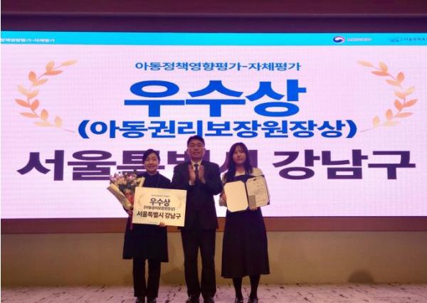 아동정책영향평가는 아동복지법에 따라 지자체가 아동에게 영향을 미치는 법령·계획·사업 등을 면밀하게 분석하고 이를 정책 결정 과정에 반영하도록 하는 제도다. 강남구는 유엔아동권리협약의 4대 원칙(비차별, 생명·생존·발달, 의견 존중, 아동 최선의 이익)를 행정 전반에 충실히 반영한 점에서 높은 평가를 받았다.