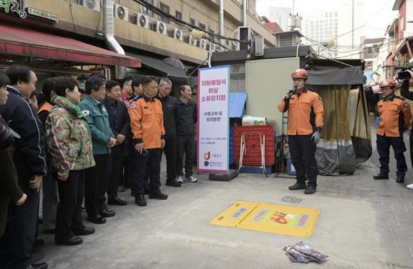 전통시장은 구조적 특성상 화재 발생 시 소방차 진입이 어려워 초기 대응이 무엇보다 중요하다. 이에 중구는 노후 소화기 교체 지원사업과 지하 매립식 비상소화장치함 설치사업을 추진하고 있다.
