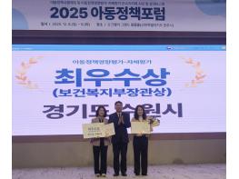 [한식일보] 수원특례시가 보건복지부·아동권리보장원이 주관하는 ‘2025년 아동정책영향평가’에서 우수 지자체로 선정돼 보건복지부장관상을 받았다. 시상식은 8일 원주시 오크밸리리조트에서 열린 ‘제13회 아동정책포럼’ 중 진행됐다.