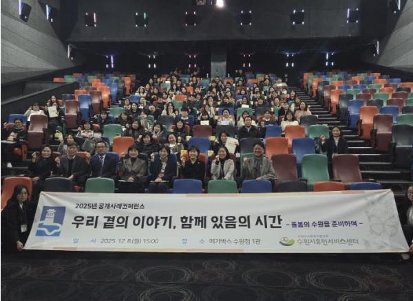 [한식일보] 수원특례시는 8일 메가박스 수원점에서 2025년 수원시휴먼서비스센터 공개사례콘퍼런스 ‘우리 곁의 이야기, 함께 있음의 시간’을 개최했다.