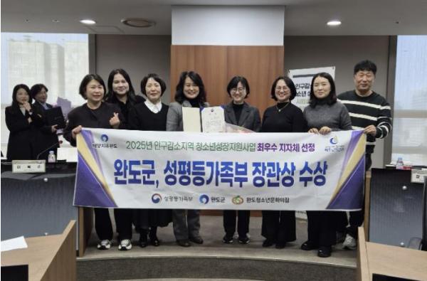 [한식일보] 완도군이 '2025년 인구 감소 지역 청소년 성장 지원 사업' 시행 첫해 최우수 지자체로 선정되어 성평등가족부 장관상을 수상했다.