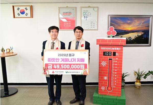 대구사회복지공동모금회(회장 신홍식)는 지난 8일 동구청을 방문해 ‘사랑의 열매달기 릴레이’ 행사를 진행하고, 따뜻한 겨울나기를 위한 성금 4,950만원을 전달했다.