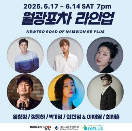 또한, 오는 5월 17일부터 6월 14일까지 매주 주말 총 5회에 걸쳐 월광포차 시즌2가 이어질 예정이다. 이번 시즌에는 임창정, 정동하, 박기영, 현진영, 이재영, 최재훈 등 대중적으로 사랑받는 가수들이 출연을 확정해 더욱 풍성한 무대를 예고하고 있다. 지역 예술인들과의 협연도 예정돼 있어 남원만의 독창적이고 풍성한 공연 콘텐츠로 꾸며질 전망이다.