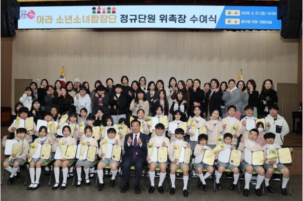 최진봉 중구청장은 “단원들의 노력과 학부모님들의 지원에 힘입어 아라소년소녀 합창단이 뛰어난 실력으로 지역문화 발전을 위해 노력하고, 구민에게 사랑받고 있어 단장으로서 매우 기쁘고 감사하게 생각하며, 앞으로도 우리 구는 합창단의 활동을 지원하고 응원하겠다.”고 말했다.