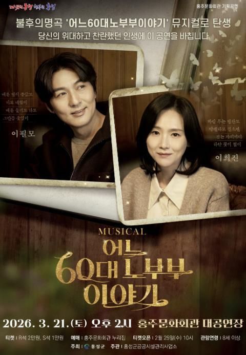 [한식일보] 홍성군 홍주문화회관은 내달 21일 오후 2시, 중장년층을 넘어 모든 세대가 공감할 수 있는 따뜻한 가족 이야기를 그려낸 뮤지컬 ‘어느 60대 노부부 이야기’를 무대에 올린다.
