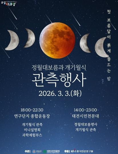 [한식일보] 대전 유성구는 3월 3일 대덕연구단지 운동장에서 대전시민천문대(대장 최형빈)와 함께 ‘2026 정월대보름 및 개기월식’ 행사를 개최한다.