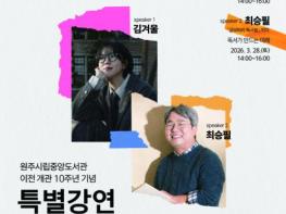 [한식일보] 원주시립중앙도서관은 단구동 이전 개관 10주년을 맞아 시민과 함께하는 특별강연을 개최한다. 이번 강연은 독서의 가치와 삶의 확장 가능성을 주제로, 각 분야에서 활발히 활동 중인 전문가를 초청해 시민들에게 깊이 있는 인문 경험을 제공한다.
