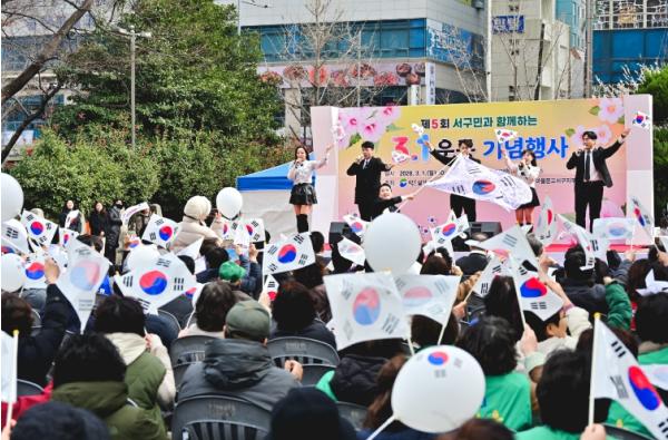 [한식일보] 부산광역시 서구는 지난 3월 1일 동아대학교 부민캠퍼스 중앙광장에서 『제5회 서구민과 함께하는 3·1운동 기념행사』를 성황리에 개최했다. 이번 행사는 제107주년 3·1절을 맞아 독립운동의 숭고한 정신을 기리고, 지역 주민과 미래 세대가 함께 역사적 의미를 되새기기 위한 자리로 마련됐다.