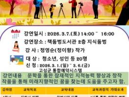 이번 강연은 청소년 및 성인 20명을 대상으로 하며, 신청은 오는 3월 6일까지 고성군 통합예약시스템을 통해 선착순으로 접수한다.