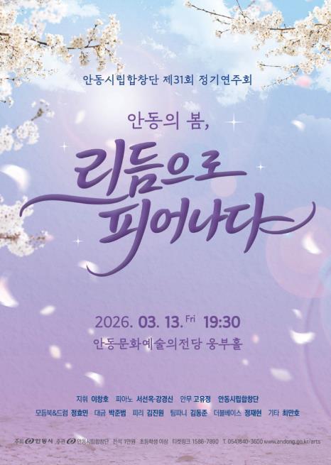 [한식일보] 안동시를 대표하는 전문예술단체인 안동시립합창단이 오는 3월 13일 오후 7시 30분 안동문화예술의전당 웅부홀에서 제31회 정기연주회 ‘안동의 봄, 리듬으로 피어나다’를 개최한다.