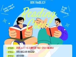 이천시 김은미 도서관과장은 “리딩크루는 시민들이 함께 읽고 이야기하며 자연스럽게 독서 공동체를 만들어가는 프로그램”이라며 “이번 과정을 시작으로 교환 독서, 읽다보면 등 다양한 참여형 프로그램을 순차적으로 운영해 시민 독서 문화를 더욱 확산해 나가겠다”라고 말했다.
