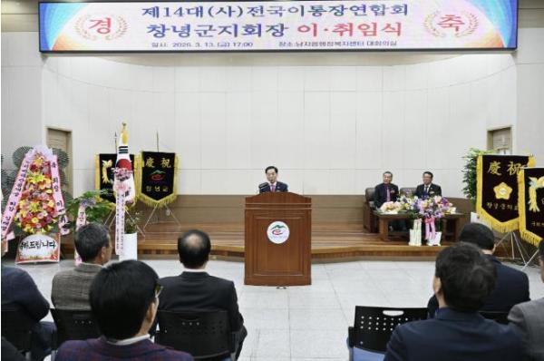 [한식일보] 창녕군은 지난 13일, 남지읍 행정복지센터 2층 대회의실에서 ‘전국이통장연합회 창녕군지회장 이․취임식’을 개최했다고 밝혔다.