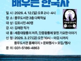 강의는 3월 27일 오전 10시부터 풍무도서관 홈페이지를 통해 신청할 수 있으며, 김포시민 40명을 선착순으로 모집한다.