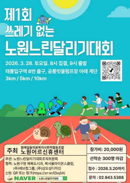 오승록 노원구청장은 “이번 노원느린달리기대회는 경쟁보다 배려와 동행의 가치를 나누는 행사”라며 “앞으로도 어르신과 지역 주민이 함께 어울리며 건강한 공동체 문화를 만들어 갈 수 있도록 다양한 정책과 프로그램을 확대해 나가겠다”고 말했다.