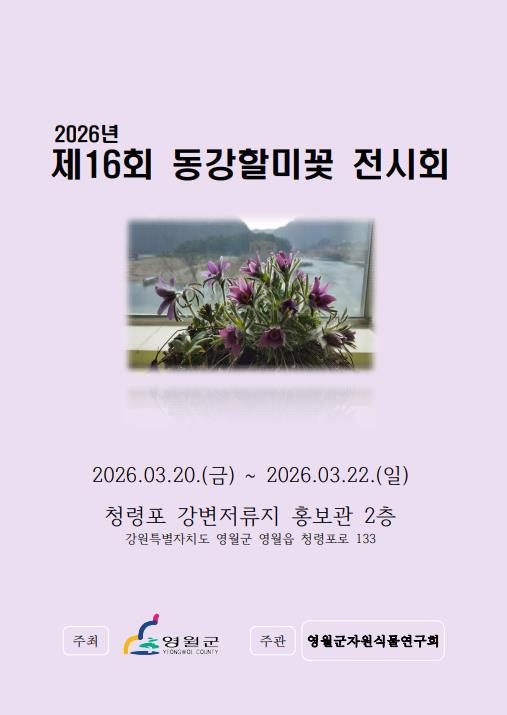 [한식일보] 2026년 3월 20일부터 22일까지 영월군 청령포 강변저류지 홍보관에서 제16회 동강할미꽃 전시회를 개최한다.
