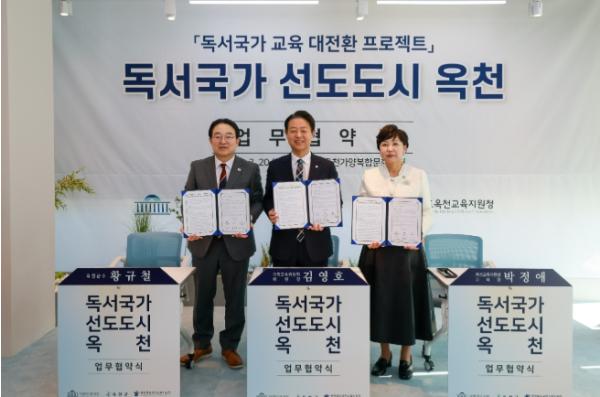 [한식일보] 옥천군은 20일 옥천가양복합문화센터에서 국회 교육위원회, 옥천교육지원청과 함께 ‘독서국가 선도도시 옥천’ 조성을 위한 업무협약을 체결했다고 밝혔다.
