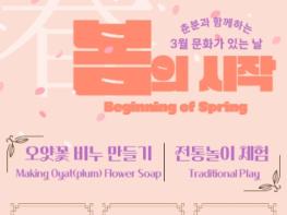 이번 행사에서는 봄의 시작을 알리는 춘분(春分)에 대해 알아보고, 대한제국 황실을 상징하는 오얏꽃 모양의 비누만들기와 전통놀이 체험을 할 수 있다.