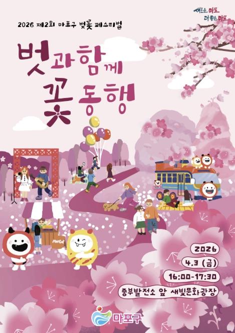 마포구는 이러한 봄의 순간을 많은 이들과 함께 나누고자 4월 3일 레드로드 R7과 마포새빛문화숲, 토정로 일대에서 ‘제2회 마포 벚꽃 페스티벌 벗과 함께 꽃 동행’을 개최한다.