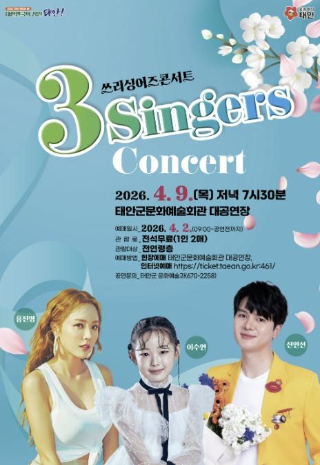 [한식일보] 태안군이 4월 9일 태안군문화예술회관 대공연장에서 홍진영 등 유명 가수가 출연하는 ‘3-Singers 콘서트’를 개최한다.