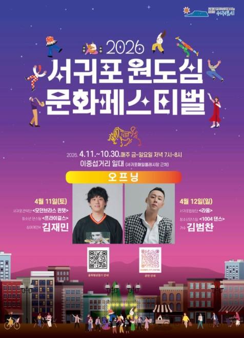 서귀포시 관계자는 “서귀포 원도심 활성화를 위한 행사인 만큼, 이번 개막 특별공연을 시작으로 10월까지 매주 금·토·일 열리는 모든 행사에 많은 분들이 참여해 함께 즐기길 바란다”라고 전했다.