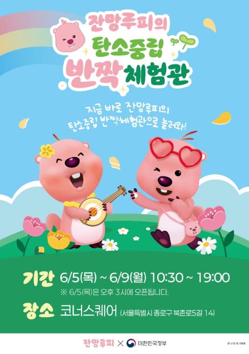 [한식일보] 문화체육관광부는 ‘환경의 날’을 맞이해 국산 인기 캐릭터 ‘잔망루피’와 함께하는 탄소중립 반짝체험관을 6월 5일 오후 3시, 서울 북촌(종로구 북촌로 5길 14 코너스퀘어 1층)에서 개관, 9일까지 운영한다.