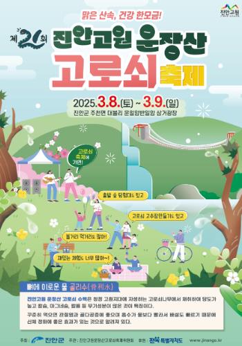 남귀현 진안고원고로쇠축제추진위원회 위원장은 “올해 더욱 체계적이고 차별화된 축제를 준비해, 관광객들에게 특별한 경험을 선사하고 청정 진안고원 운장산의 고로쇠를 통해 좋은 기운을 전하겠다”고 밝혔다.