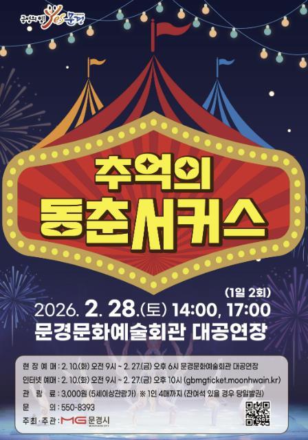 • [한식일보] 문경문화예술회관에서는 가족 연인 직장 동료들과 함께 재미있게 볼 수 있는 추억의 동춘서커스 공연을 2월 28일(토) 14:00, 17:00 (1일2회)에 문경문화예술회관 대공연장에서 개최한다.