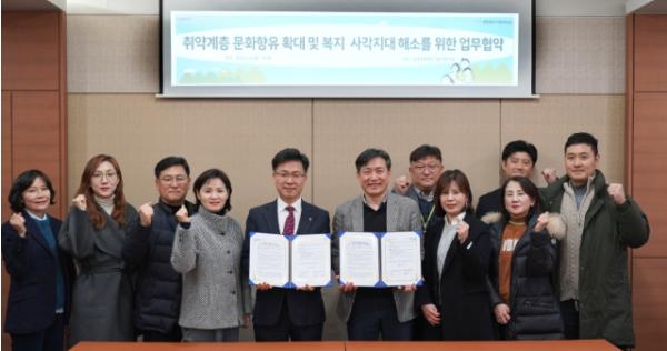 • [한식일보] 광주문화재단은 2월 9일 광주광역시사회서비스원과 취약계층 문화향유 확대 및 복지 사각지대 해소를 위한 업무협약을 체결했다.