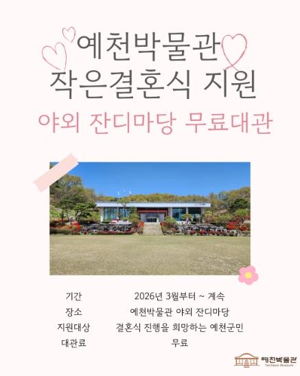 특히 자연 친화적이고 개방감 있는 예천박물관 야외 잔디마당의 공간적 특성을 살려 가족·친지 중심의 따뜻한 예식을 지원할 계획이다.