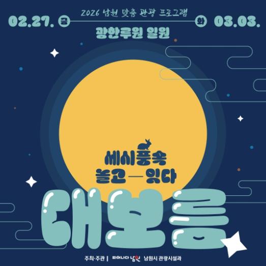 [한식일보] 남원시는 정월대보름을 맞아 전통 세시풍속을 현대적으로 재해석한 체험형 문화행사 『세시풍속 놀고-잇다_대보름』을 오는 2월 27일부터 3월 3일까지 5일간 광한루원 일원에서 운영한다고 밝혔다.