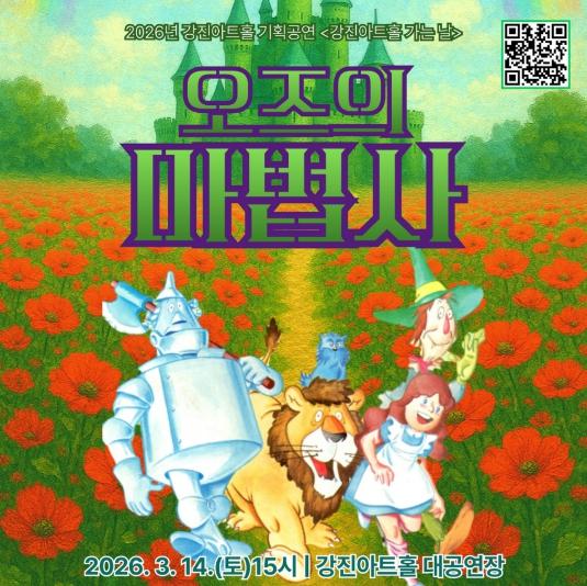 • [한식일보] 강진군 강진아트홀이 오는 14일 오후 3시, 3대가 함께 즐기는 공연 ‘오즈의마법사’를 상연한다.
