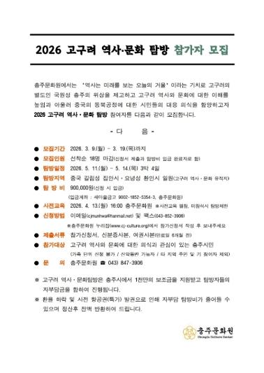 • 충주문화원, 2026 고구려 역사·문화 탐방 참가자 모집