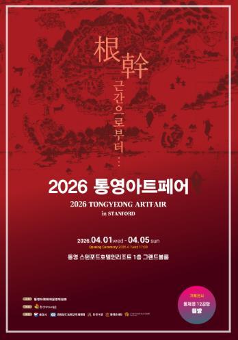 • [한식일보] 통영시는 연명예술촌(촌장 강경화)이 주관하는 통영 아트페어 인(in) 스탠포드가 2026. 4. 1.~4. 5까지 5일간 위치한 스탠포드호텔앤리조트 1층 그랜드볼룸에서 개최된다고 밝혔다.