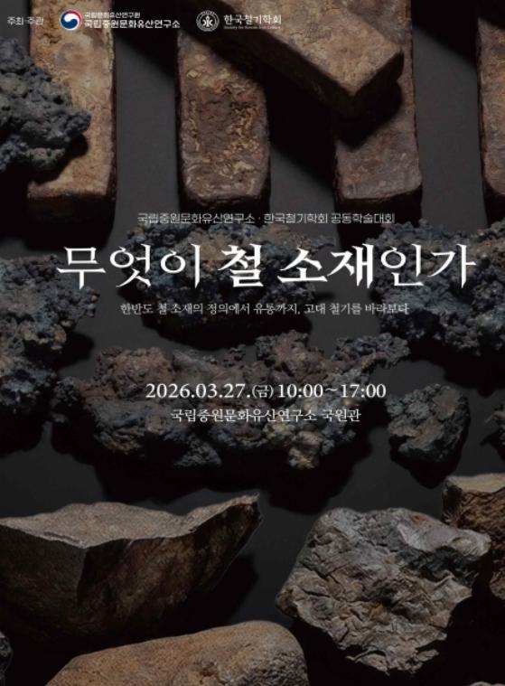 [한식일보] 국가유산청 국립문화유산연구원 국립중원문화유산연구소는 한국철기학회와 함께 2026년 3월 27일 오전 10시 국립중원문화유산연구소 국원관에서『무엇이 철 소재인가?』를 주제로 공동 학술대회를 개최한다.
