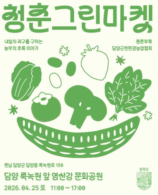 • [한식일보] 담양군친환경농업협회가 오는 25일 오전 11시부터 오후 5시까지 죽녹원 앞 영산강 문화공원에서 ‘제2회 청춘그린마켓’을 연다.