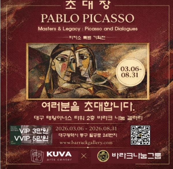 [한식일보] 한 도시의 전시장이 한 시대의 미술사를 온전히 담아내는 일은 결코 가벼운 과제가 아니다. 2026년 3월 6일부터 8월 31일까지 대구 동구 봉무동 바라크나눔갤러리에서 열리는 피카소 인 대구 피카소와 전설의 거장들 특별전은 이러한 학술적 무게를 정면으로 다루며 지역 문화계에 새로운 이정표를 제시한다. 이번 전시는 단순히 세계적 명화를 나열하여 선보이는 단발성 행사를 넘어 20세기 미술이 형성해온 사유의 구조를 하나의 정교한 큐레이토리얼 맥락 안에서 재구성하려는 기획이다.