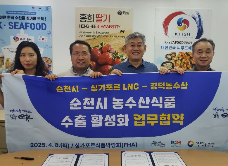 또한, 싱가포르 최대 유통매장이며 한국식품을 취급하는 에스엘 푸드(SL FOODS Pte Ltd)와 엘엔씨 유통체인(LNC Pte Ltd)과 수출 상담회를 열고, ‘Made in 순천’ 농특산물 수출 활성화를 위한 업무협약을 체결했다.