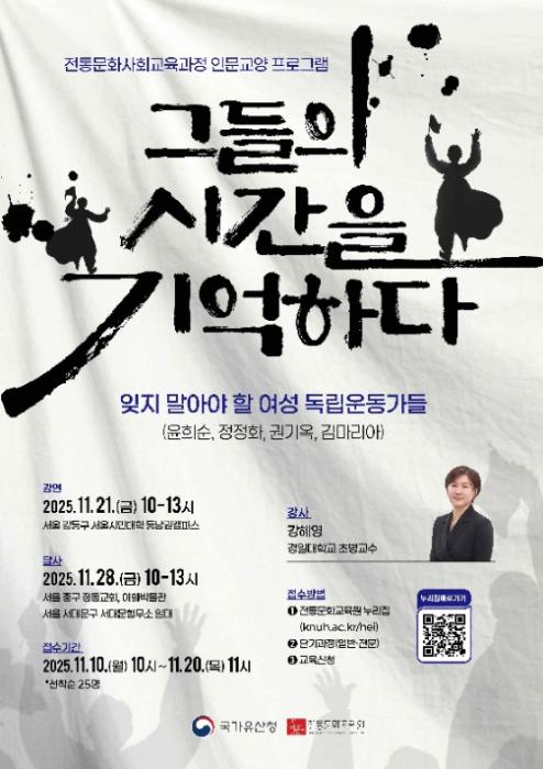 • 전통문화교육원, 2025년 인문교양프로그램 '그들의 시간을 기억하다-잊지 말아야 할 여성 독립운동가들' 운영