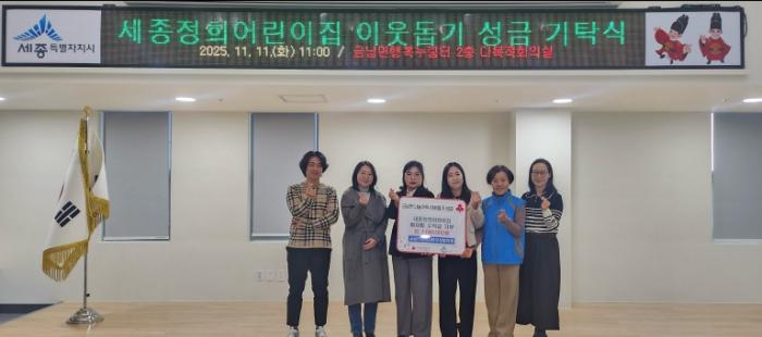 • [한식일보] 세종특별자치시 금남면 세종정희어린이집(원장 박수진)이 11일 금남면지역사회보장협의체(공동위원장 이선영·박종설·이한월)에 이웃돕기 성금 104만 원을 전달했다.